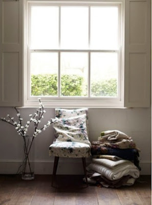 , the clean feeling of white morning light, quilts piled high and austere fireplaces...